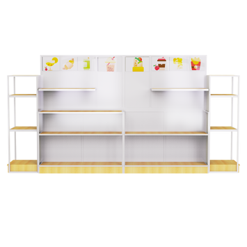 CERES Double-Sided Wood Grain Melamine Panel Island Rack - Farmhouse-Style Central Display for Grocery Stores